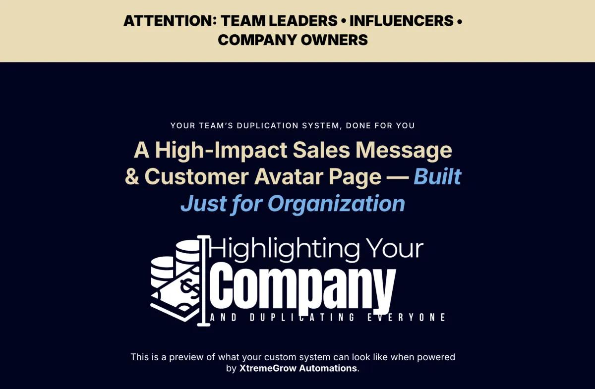 Perfect for: network marketers, insurance agencies, real estate teams, financial groups, coaches, crypto communities, ministries, and more.