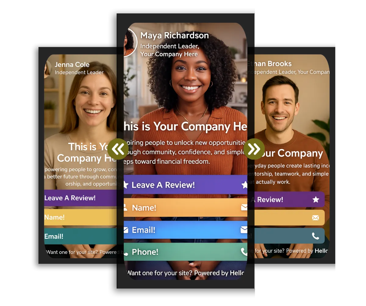 Your HelloVid widget adds a real human touch to your landing page with up to nine powerful call-to-actions — driving signups, appointments, team growth, and instant trust. This is the conversion engine that turns cold traffic into warm leads.
